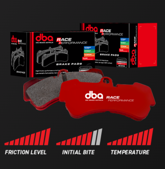 DBA's RACE PERFORMANCE brake pads are designed for track/circuit use, where temperatures are above 350¶§C (662¶§F). The pad is enhanced with carbon fibre for high strength and offers stable friction at extreme temperatures.